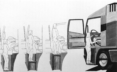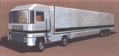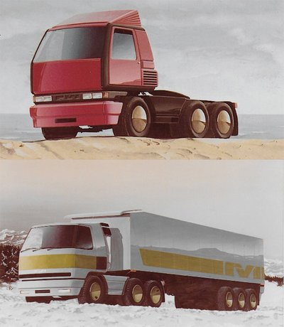Guy Greiffert vázlatai az új teherautóról. Felül a moduláris felépítésű, alul pedig az integrált fülkés vontató