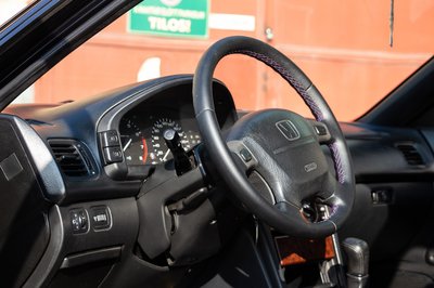A kormányt már én bőröztettem újra, szóval a lila cérnáért az én ízlésemet kell ekézni. De nekem akkor is tetszeni fog.