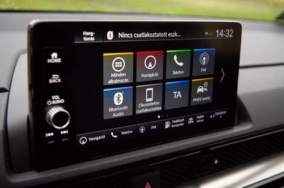 Az irányváltó kezelése szokást igényel, elöl pedig ott a vezeték nélküli töltőpad. Plusz a szokásos aljaztok: USB-A, USB-C és a 12V-os