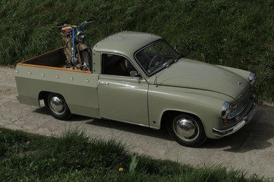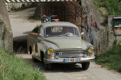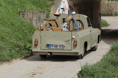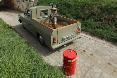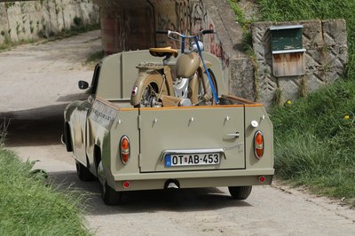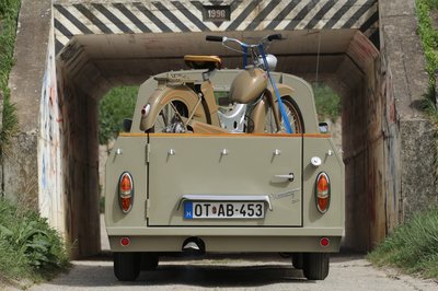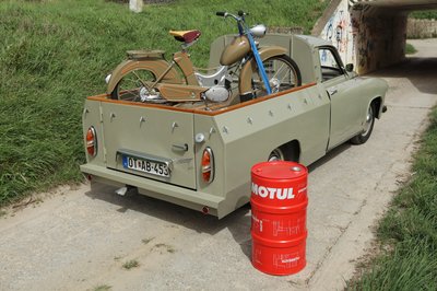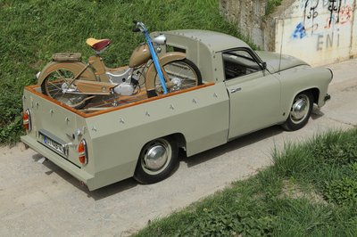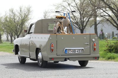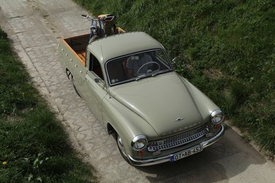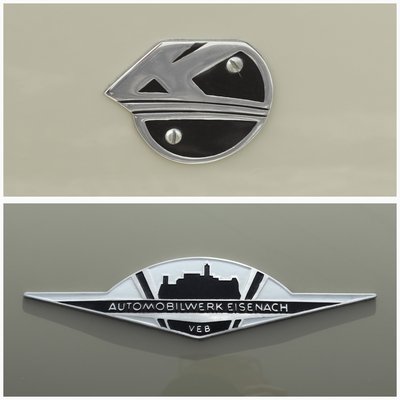 A felső logó a Halle-i Karosseriewerkre utal, a speciális és különleges karosszériájú járművek szülőhelye volt az üzem, a pick-upok valójában ott készültek