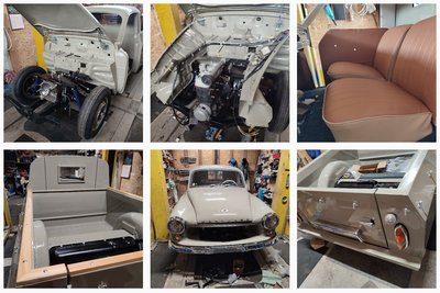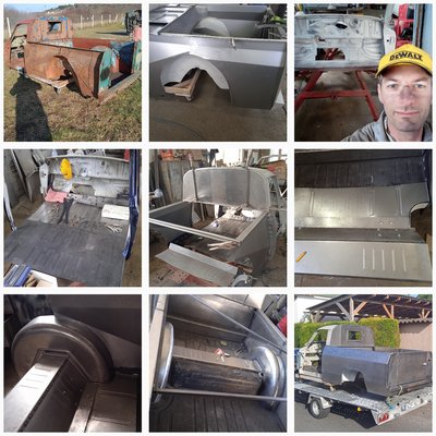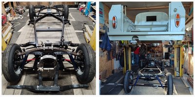 A karosszéria és az alváz házassága Gyula műhelyében – jól látszik az elöl-hátul laprugós felfüggesztés