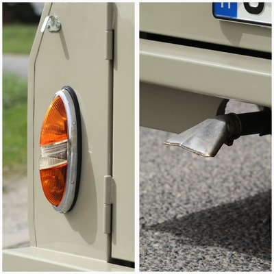 A hátsó lökhárító egy zártszelvény. A benzinbetöltő zárható. A rendszámtábla keret a deluxe-ról való, ér olyan 6-700 eurót