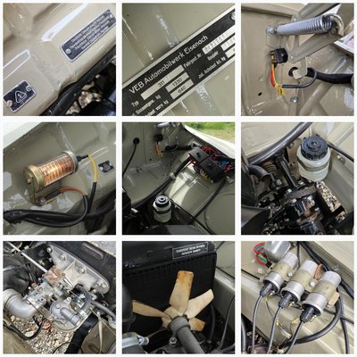 Bal felül az 1-es plakett, alatta a világítás és a karburátor. A trafó már kelet-német jármű specifikus