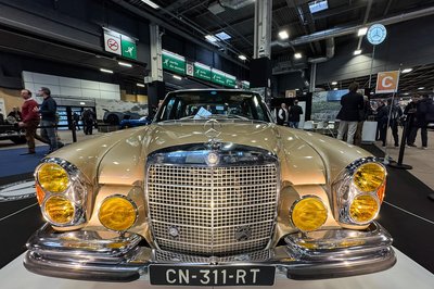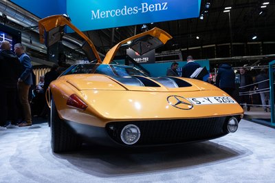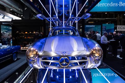 Félkész sirályszárnyas Mercedes a márka saját standján