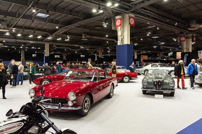 Elöl egy 1963-as Ferrari 250 GTE, hátrébb egy 1958-as Lancia B24S Convertible