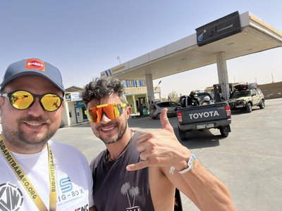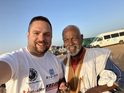 Aztán persze újra benzinkút Mauritánia fővárosában. A képen Balázs haverom, aki cigit tarhált volna, de nekem ugye nem volt.