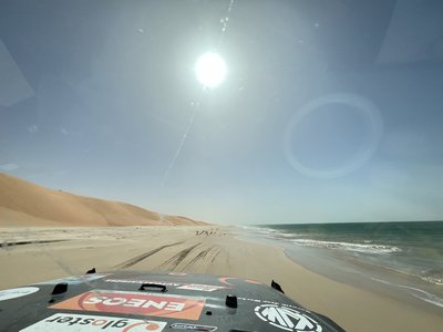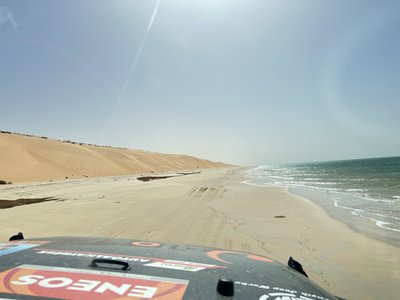 Balra homokdűnék, jobbra az óceán, mi pedig elautóztunk a napba!