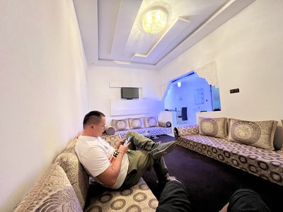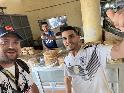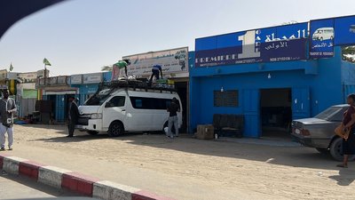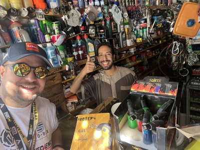 Ő pedig Aladdin Tarfayában, aki szerzett nekünk féktisztítót. A környezet pedig a helyi autósbolt - és itt elhiszem, hogy tényleg minden van.