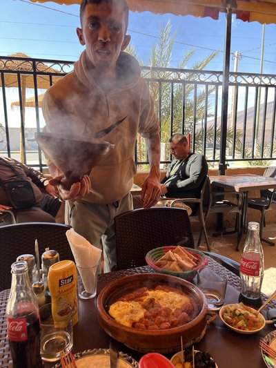 4 órával később megálltunk ebédelni, a menü ismét Tajine.