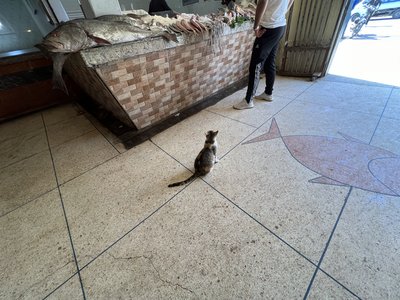 A macska is erre volt kíváncsi, na meg a leeső halakra.