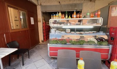 Egy pizzériában ebédeltünk, ami gyakorlatilag az utcán működött, nem volt belső tér. Narancsban a felszolgáló, jobbra tőle a főnök!