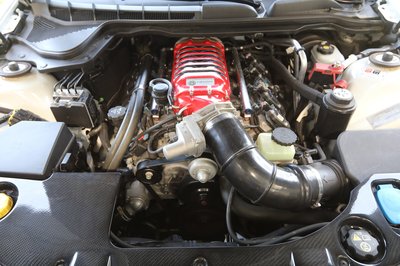 Az első takaróelem igazi karbon, a kompresszor fedele vörös színű, a festése feláras tétel