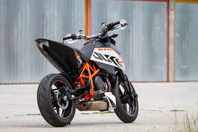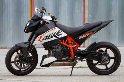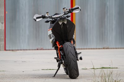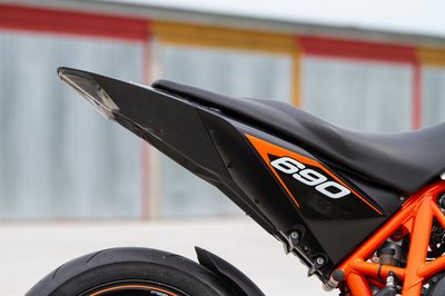 A 690 SM-mel ellentétben a Duke blokk alatti kipufógót kapott. Hála az égnek