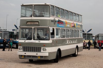 Az emeletes Ikarus E99, és angol kollégái egy későbbi, talán még épp reményteljes korszakból.