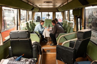 Mellette az NDK kormányának tárgyalóbusza, eredeti állapotban.