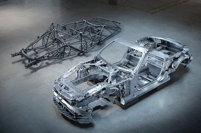 Az első SL és az új SL vázszerkezete. A rácsváz könnyű és erős, de - szemben az önhordóval - sorozatgyártásra alkalmatlan. Az új SL karosszériája is csupán 270 kilót nyom