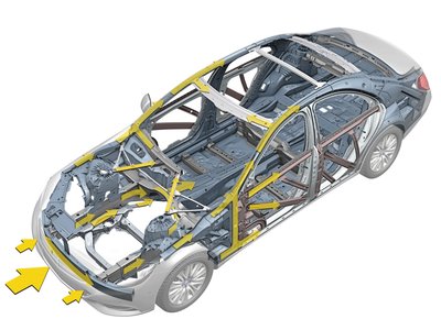 Így osztja szét, illetve vezeti el az ütközés energiáját a korszerű tervezésű önhordó karosszéria. Az alapelveket Barényi Béla fektette le még az ötvenes években a Mercedesnél