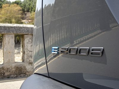 Az elektromos hajtásláncra utaló E betű kék-fehér színben kerül az e-2008-ra