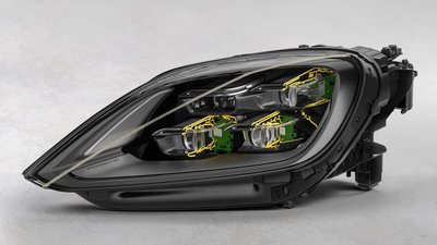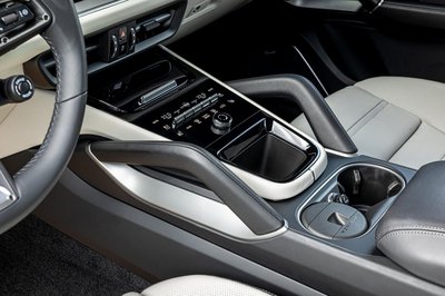 A világos kárpit miatt nehezen látható a fejtámlába dombornyomott Porsche embléma