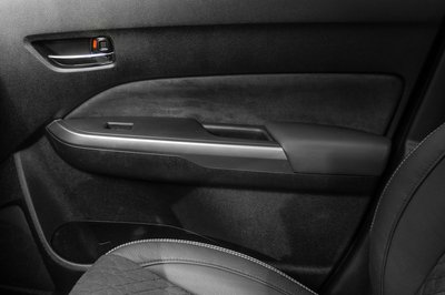 Na, ez viszont nem a legkifinomultabb részlet. Az ajtóbehúzó fölött kéttenyérnyi a normális kárpitozás, a többi műanyag