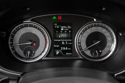 Szokás szerint kerek analóg műszerek, köztük az információs kijelző. Itt a fogyasztást monitorozhatjuk, vagy akár a hibrid rendszer működését, az aksi töltöttségét figyelhetjük
