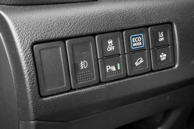 Egy halom kapcsoló. Sajnos a legendás Illumi Cancel már nincs velünk. Az Eco módot érdekes módon ide rejtették, nem a menetmód-választó tekerentyűre került. Hatalmas pozitívum, hogy a sávtartót, ráfutásfigyelőt, lejtmenetvezérlőt nem menüből kell bogarász