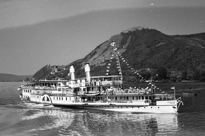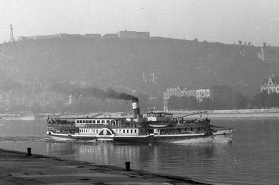 A Gellérthegy előtt a Táncsics gőzhajó, amelynek eredeti neve Szent Gellért volt