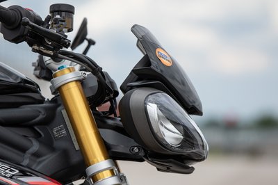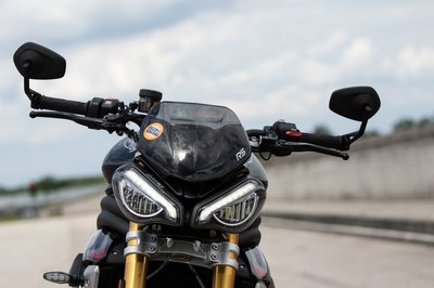 A lámpa megegyezik a Street Triple-ével, a fejidom pedig extra felszerelés