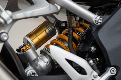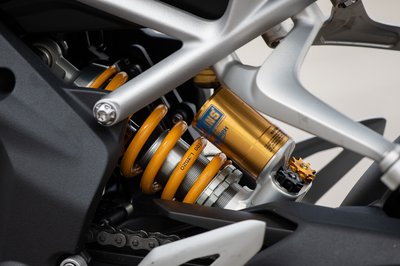 Az Öhlins TTX hátsó gátló himbarendszer nélkül csatlakozik a lengővillához