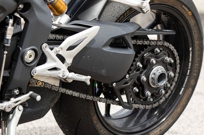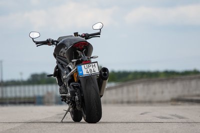 Az ülés alatti dobok a súlycsökkentés és a tömegközpontosítás áldozatává váltak, de a jellegzetes Speed Triple részletek megmaradtak