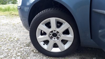 15" 195/55R15 méretű gumikkal. Kicsit ballonosabb a gyári méretnél, de városban jól jön az a plusz egy centi hasmagasság