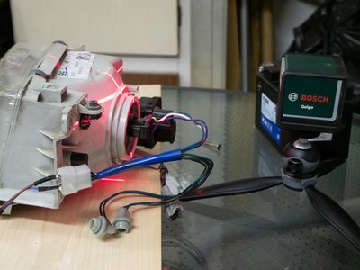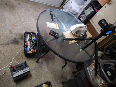 A rendszer: egy akku, a lámpa az asztalhoz rögzítve és egy fényképezőgép