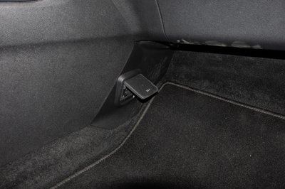 Az anyósülés előtt, külön padlórekeszben a defektjavító és a vonószem