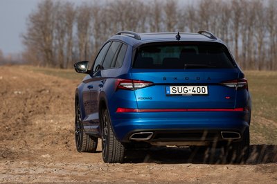 A lökhárítón a nagy légbeömlő trapéz különbözteti meg a sima Kodiaq-októl