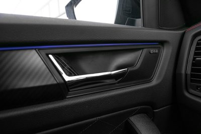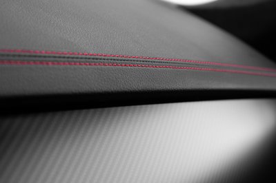 Karbonhatású betét és a piros cérnás varrás a műszerfalon
