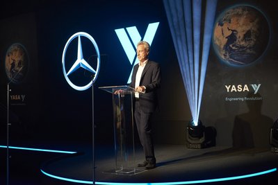 A Mercedes a legegyszerűbb utat választotta, megvásárolta a YASA céget. A képen az utóbbi igazgatója, Chris Harris az esemény bejelentésekor