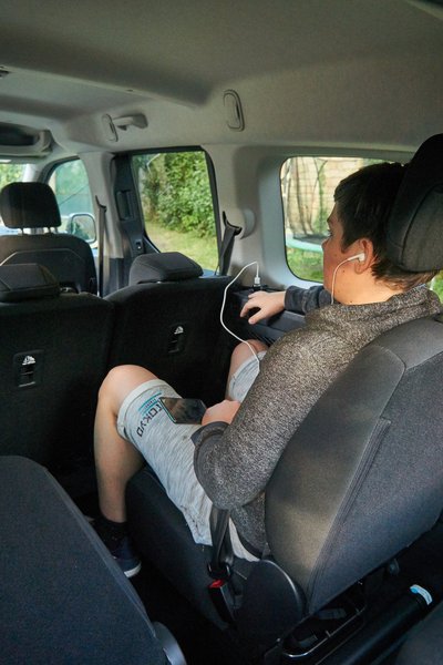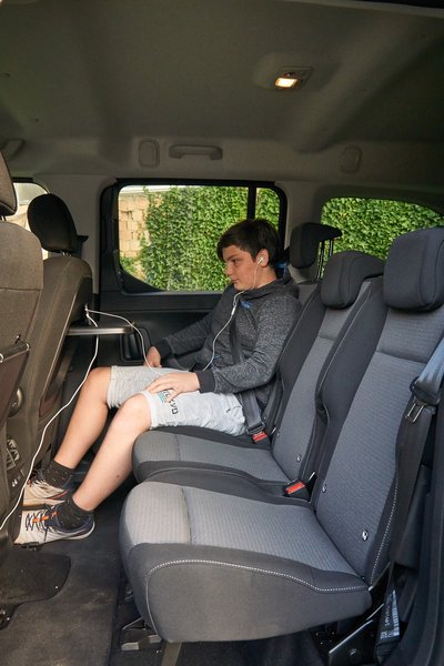 A Proace ajtajában nagy zseb van, az óracsoport feletti fedél csak azért nincs nyitva, mert nem marad úgy. Az utasnak és a sofőrnek is jut könyöklő