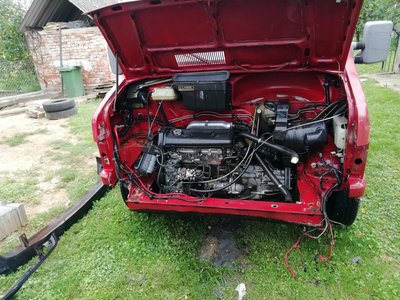 Norbert már megkezdte az autó szétbontását a felújításhoz. A motortér elől leszerelte a homlokfalat