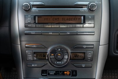 Az Auris és a Corolla szedán tök más belső kapott. A Corolláé teljesen normális, ez viszont kicsit fura ezzel a boltíves középkonzollal