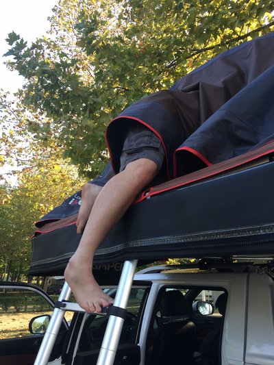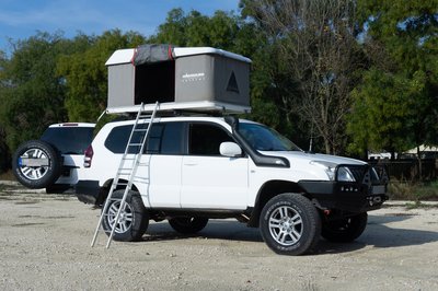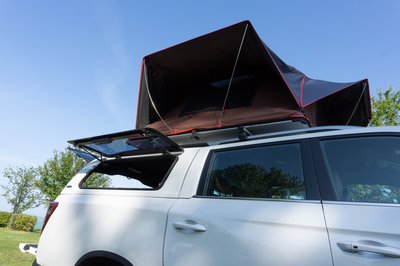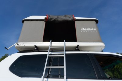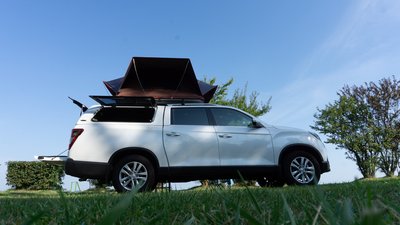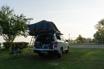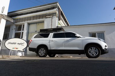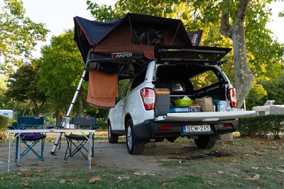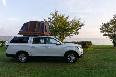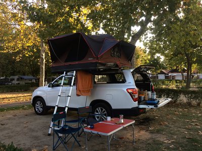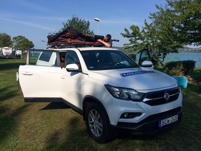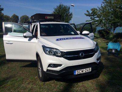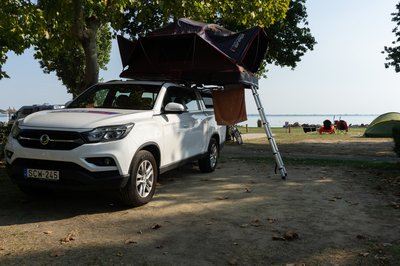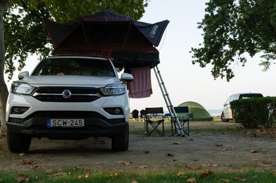 Jó kiállása van a Grand Musso-nak, de tetősátorral még jobb. A csodájára jártak a kempingben.