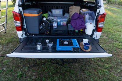Egy felkészült expedíciós autó belseje