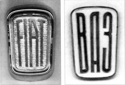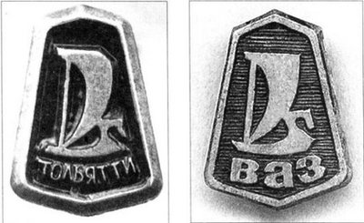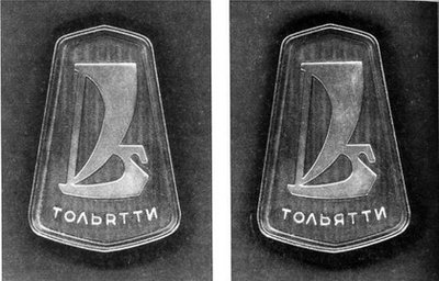 Az elrontott és a végleges Toljatti-feliratos, korai 2101-embléma