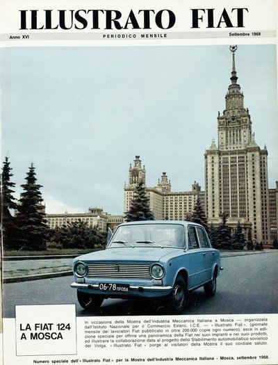 Fiat 124R szovjet próbarendszámmal Moszkvában 1968-ban, az Illustrato Fiat címlapján