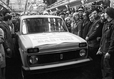 Az első Niva legördül a gyártósorról a büszke munkások tömegében