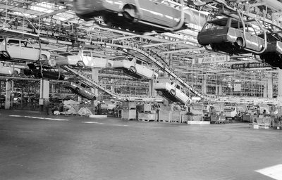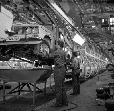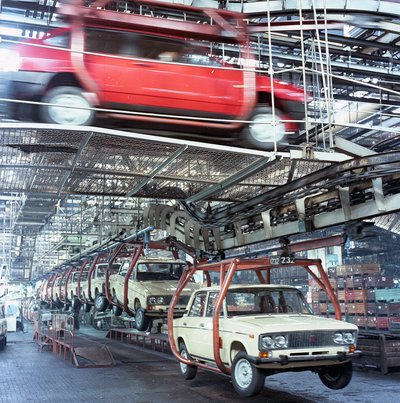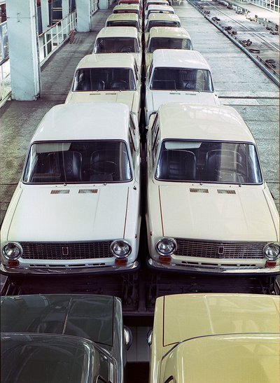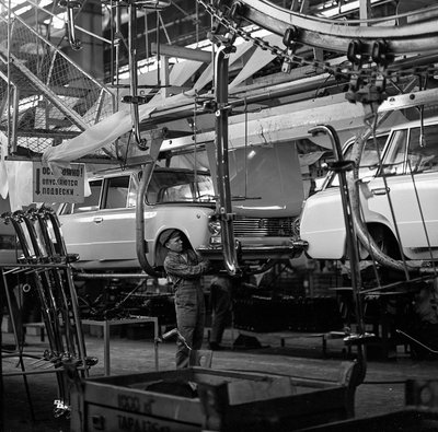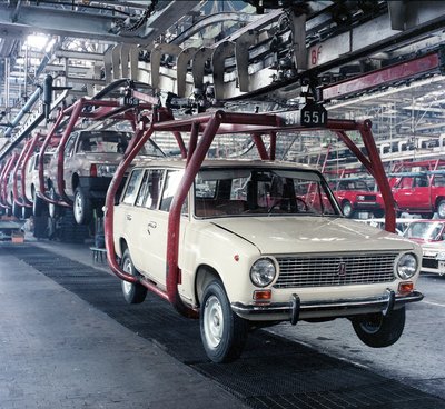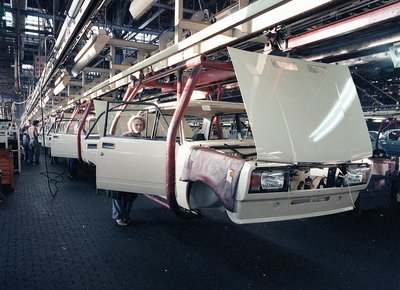 2107-esek a gyártósoron, háttérben 2106-okkal