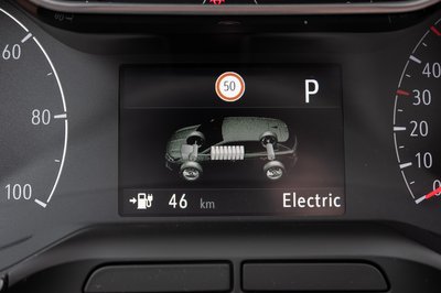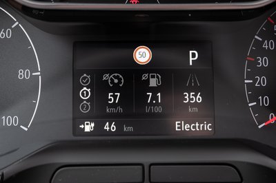 A fedélzeti számítógép úgy tesz, mintha az áramfogyasztás nem is lenne - az átlagfogyasztást nem is mutatja, csak benzinből. Igaz, a menüből kihámozható