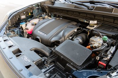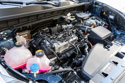 Hangtompító burkolat nélkül a motor. A hibrid rendszer elektromos részéhez tartozó egységek miatt eléggé zsúfolt a motortér