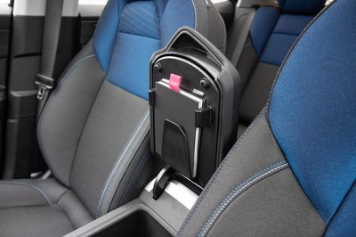 Előre-hátra csúsztatható a könyöklő, első helyzetben nehéz hozzáférni a rolóhoz és a hátsó pohártartóhoz