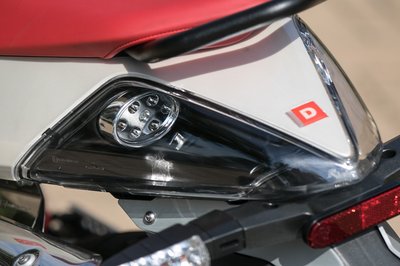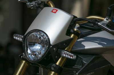 Furcsa szabású első lámpa, érdemes rá vigyázni, mert drága a pótlása