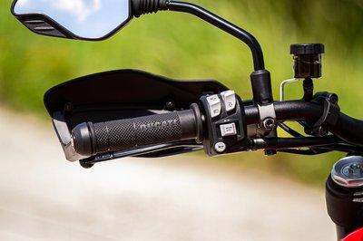Az első generációnál a tükröt a kézvédőből lehetett kihajtani – ez viszont elfér az autók között, és látni is lehet benne